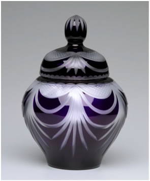 U-08A-50 | Baby Angel - Dark Amethyst | 5.5 in. D x 7.5 in. H | 50 | Medium | $288 | Baby Angel Urn - 24% lead crystal urn in a beautiful shade of dark amethyst. Made in Europe. This mouth blown urn is supplied with a white satin bag which holds the cremains and an epoxy to securely seal the lid. |