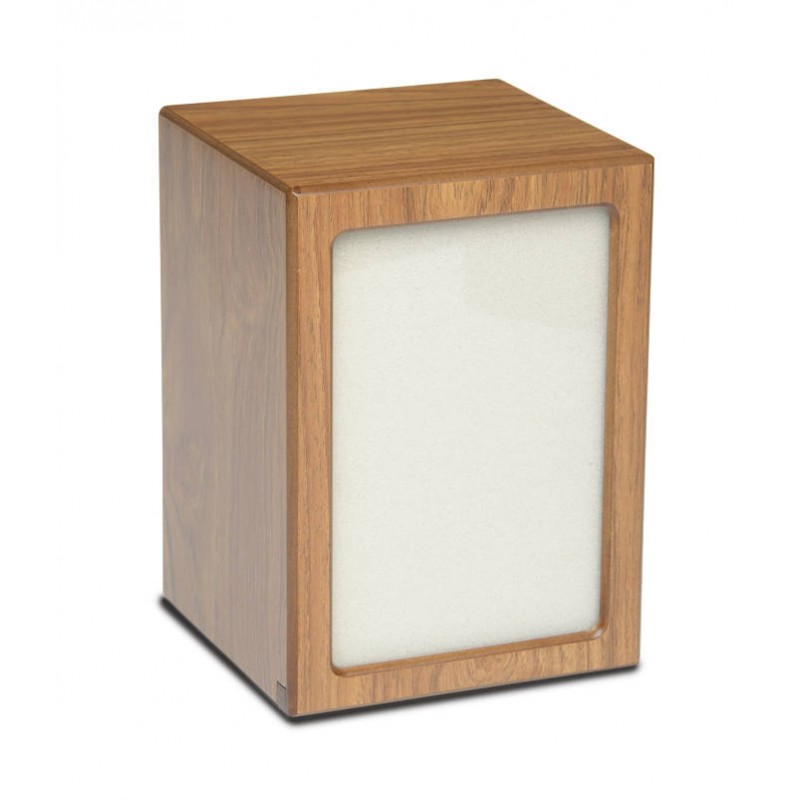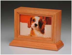 ZB-100 | Photo Frame with Base - Oak | 8 in. x 3 ¾ in. x 6 in. | 40 | Medium | $140 | Oak Wood 4 in. x 6 in. photo frame urn with glass front. Loads from back and securely closes with brass screws. Felt pads at each corner. |