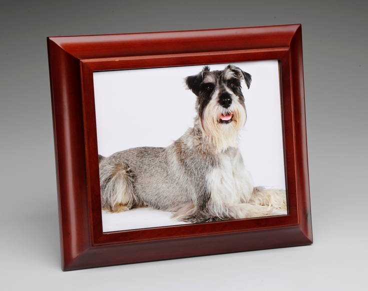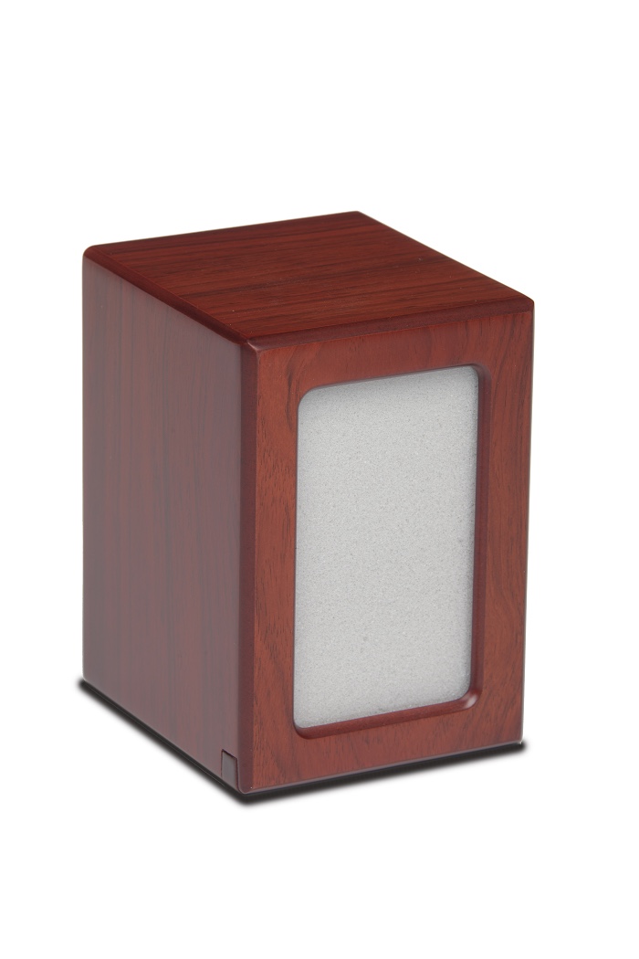 ZB-100 | Photo Frame with Base - Cherry | 8 in. x 3.75 in. x 6 in. | 45 | Medium | $160 | Birch wood 4" x 6" photo frame urn with cherry stain and plexiglass front. Loads from back and securely closes with screws |