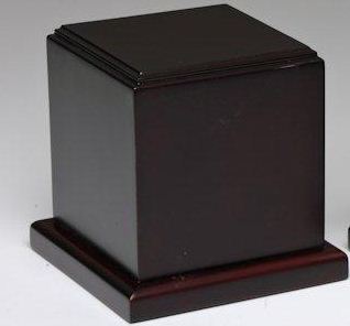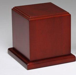 HB-105-Mahogany | Birch Wood- Mahogany | 4 ¼ in. upper, 5 ¼ in. base x 5 in. H | 40 | Medium | $120 | Solid wood cube urn made of birch wood with beautiful mahogany finish with clear lacquer coat. Base securely closes with brass screws. Felt pads on each corner of the base. |
