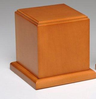 HB-105-Honey | Birch Wood- Honey | 4 ¼ in. upper, 5 ¼ in. base x 5 in. H | 40 | Medium | $120 | Solid wood cube urn made of birch wood with beautiful honey finish with clear lacquer coat. Base securely closes with brass screws. Felt pads on each corner of the base. |