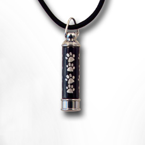 J-076-W | Cremation Urn Pendant | 1 3/4" L x 3/8" W | 1/5 | Small | $50 | High quality stainless steel cremation urn pendant with paw print design. Threaded at base, holds approximately 1/5 of a teaspoon. |