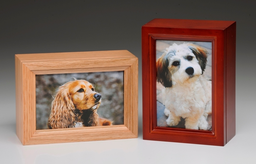MD-PB06 | Medium Brown Photo Urn | 5.75 in. L x 4 in. W x 4.25 in. D | 45 | Medium | $160 | This pet urn is a Brown White in color picture frame urn made of MDF wood and has a glass front to showcase a picture. To insert the photo the front slides open without disturbing the cremains. This urn can display a picture either horizontally or vertically. Urn size is 5.75" L x 4" W x 4.25" D. Photo size is 4.5" x 2.75" |